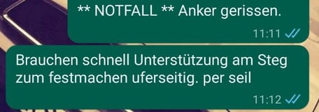 Unsere Stegsanierung wurde leider durch einen sagen wir einmal „unkooperativen“ Backbord-Anker begleitet. Besonders durch das Hochwasser im Frühjahr 2021 wurde die Ankerkette des den Steg absichernden Backbordankers so stark in Mitleidenschaft gezogen, dass sie letztlich riss.